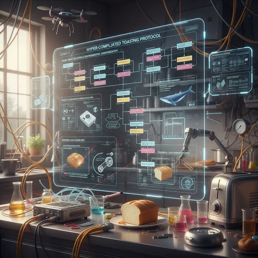 i need a flowchart for how to toast bread, make it as wacky and over the top and complicated as possible; photorealistic, high detail; natural lighting
