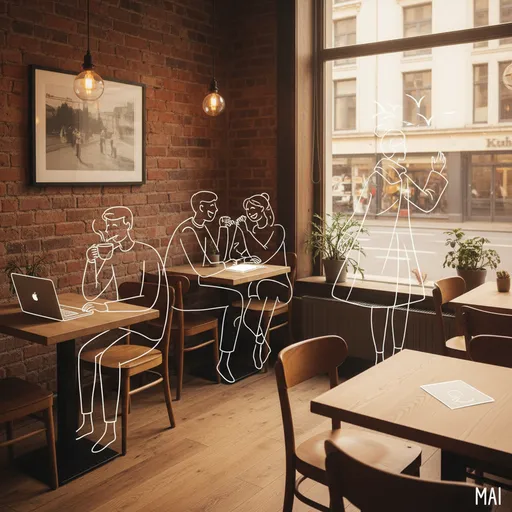 Keep the drawings simple, fluid, and expressive, with no facial details., Do not obscure any original elements.; The illustrated figures should feel like friendly, imaginative additions that blend seamlessly with the context of the scene.; The illustrated figures should interact naturally and meaningfully with the environment, reflecting the mood, purpose, and activity of the space., Mai; Add clean, minimal white line-drawing illustrations of people into this photo.; Match the perspective, lighting, and scale of the scene.