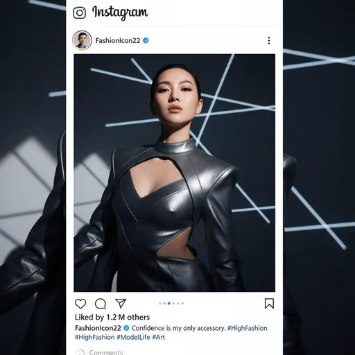Keep uploaded face consistent and unchanged.; The individual's facial features are delicate yet sharp, clean, and naturally stunning, They stand in a modern, dynamic pose:; with eyes locked on the viewer with calm, magnetic intensity and lips softly relaxed and neutral; Ultra realistic portrait of an individual presented inside an oversized Instagram post frame that dominates the scene., radiating a high-fashion model
