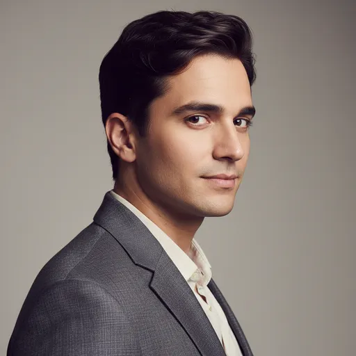 A professional, high-resolution profile photo, maintaining the exact facial structure, identity, and key features of the person in the input image., The subject is framed from the chest up, with ample headroom., Observe crisp detail on the fabric texture of the blazer, individual strands of hair, an; The person looks directly at the camera.; The background is a solid '#562226' neutral studio color.; The atmosphere exudes confidence, professionalism, and approachability.; Clean and bright cinematic color grading with subtle warmth and balanced tones, ensuring a polished and contemporary feel.; Captured on an 85mm f/1.8 lens with a shallow depth of field, exquisite focus on the eyes, and beautiful, soft bokeh.; They are styled for a professional photo studio shoot, wearing a premium smart casual blazer in a subtle charcoal gray., Shot from a high angle with bright and airy soft, diffused studio lighting, gen